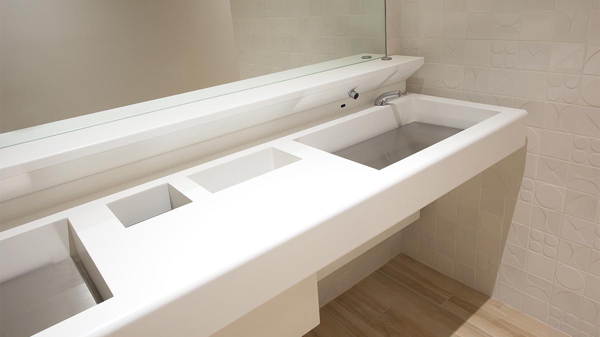 If bins are not conveniently placed, paper towels and other trash will accumulate quickly, which is why we recommend integrating trash receptacles directly into the countertop. Most paper towel dispensers are located close to the sink, so keeping the trash bin nearby encourages visitors to use it.