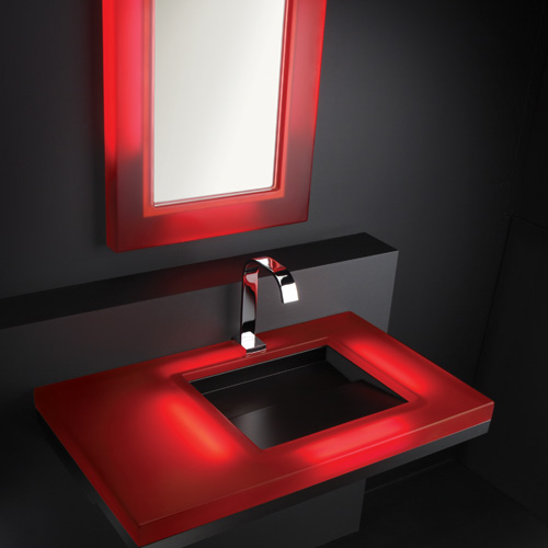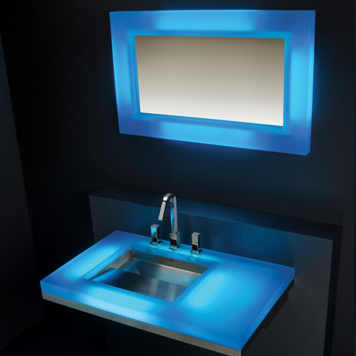 Our mirrors are available in a satin finish stainless steel frame or in a variety of beautiful cast resin colors. Pair this translucent material with our built-in LED lighting option for a truly striking effect.