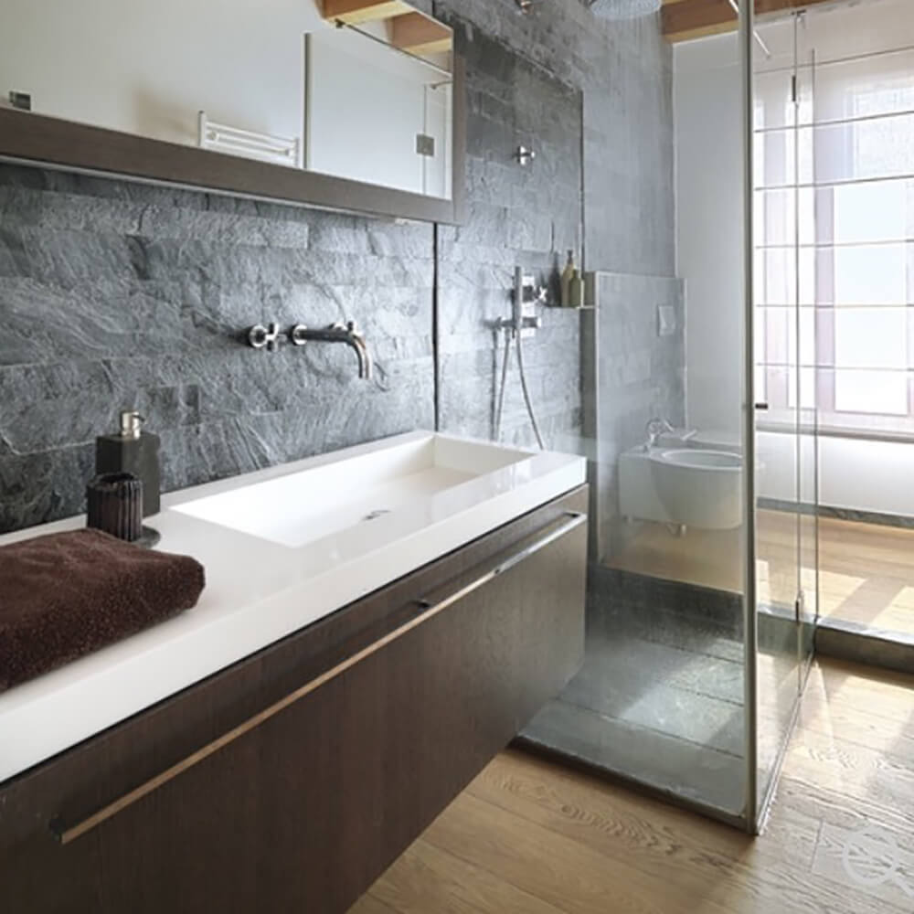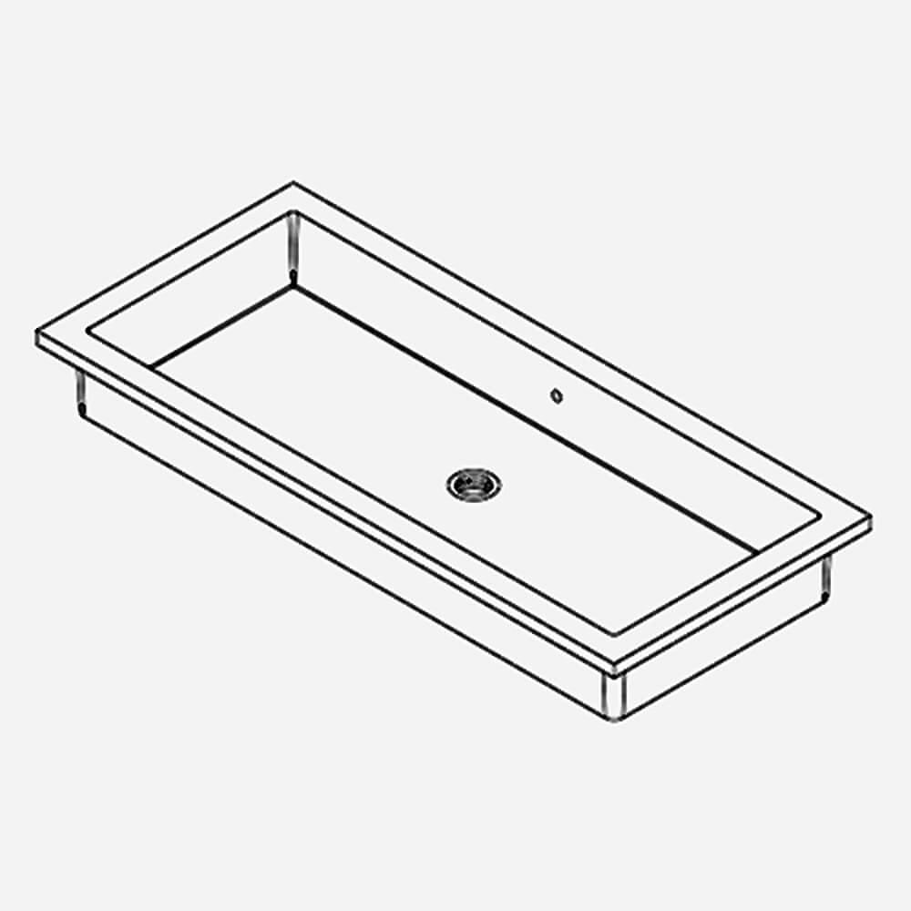 This option provides a rectangular-shaped bowl integrated into the solid surface deck. The bowl measures 33" wide x 14" front-to-back x 4” deep (838 x 356x 102 mm).