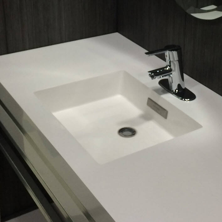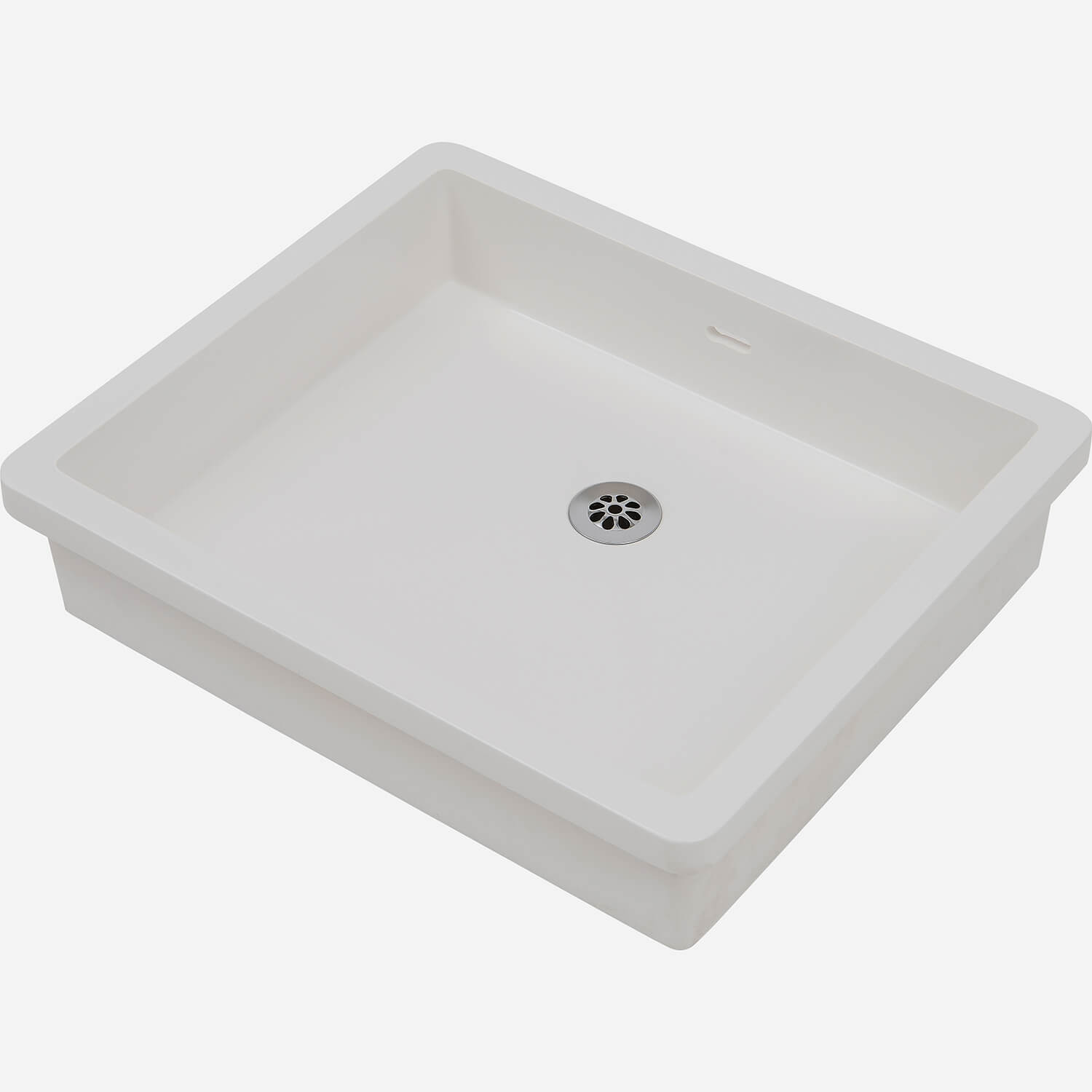 This option provides a rectangular-shaped bowl integrated into the solid surface deck. The bowl measures 17" wide x 14" front-to-back x 4” deep (356 x 432 x 102 mm). This bowl will be the featured bowl in however many stations the sink has.