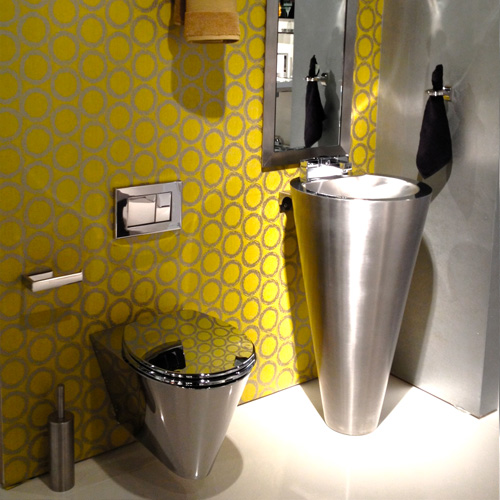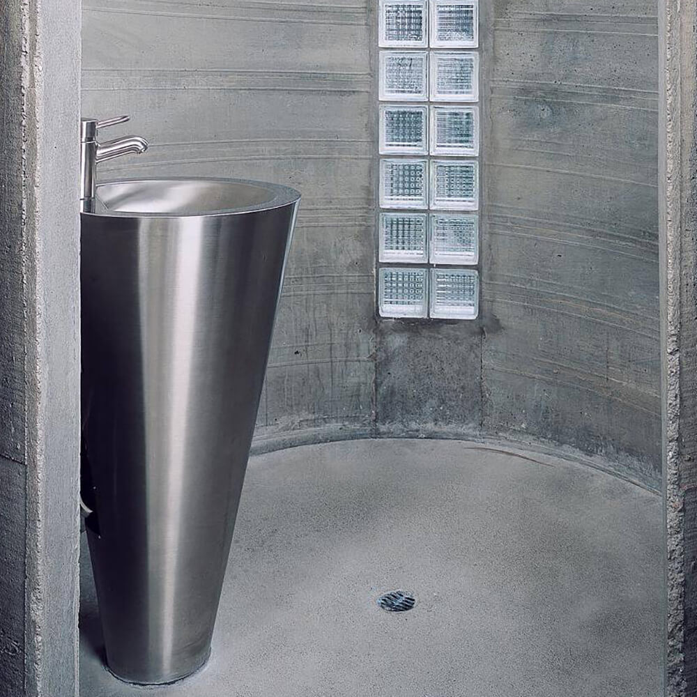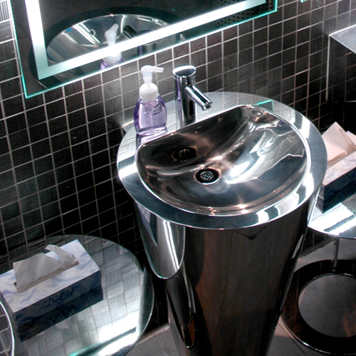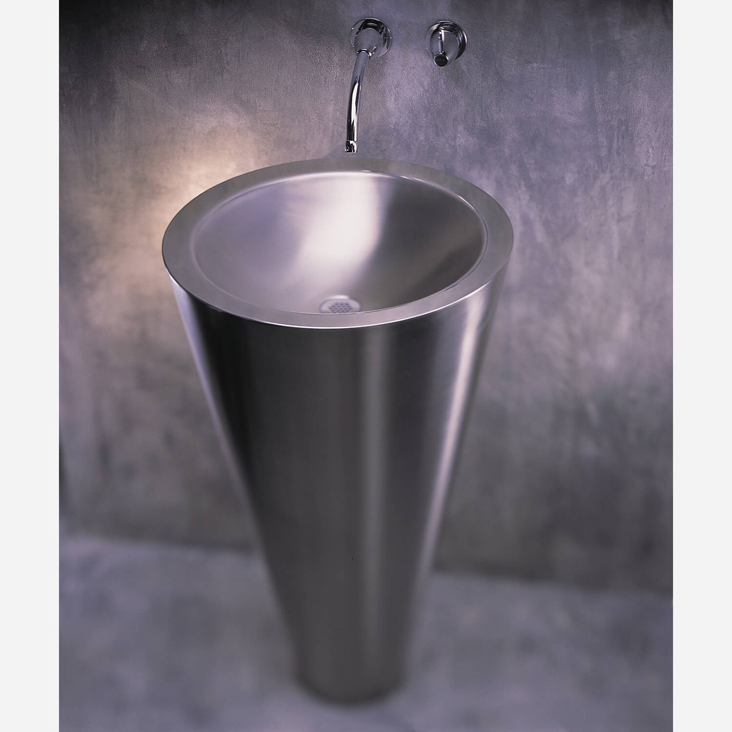 Metropolis is a one-piece conical pedestal stainless steel washbasin available with a choice of a D-shaped bowl or round bowl (2 round sizes are available).