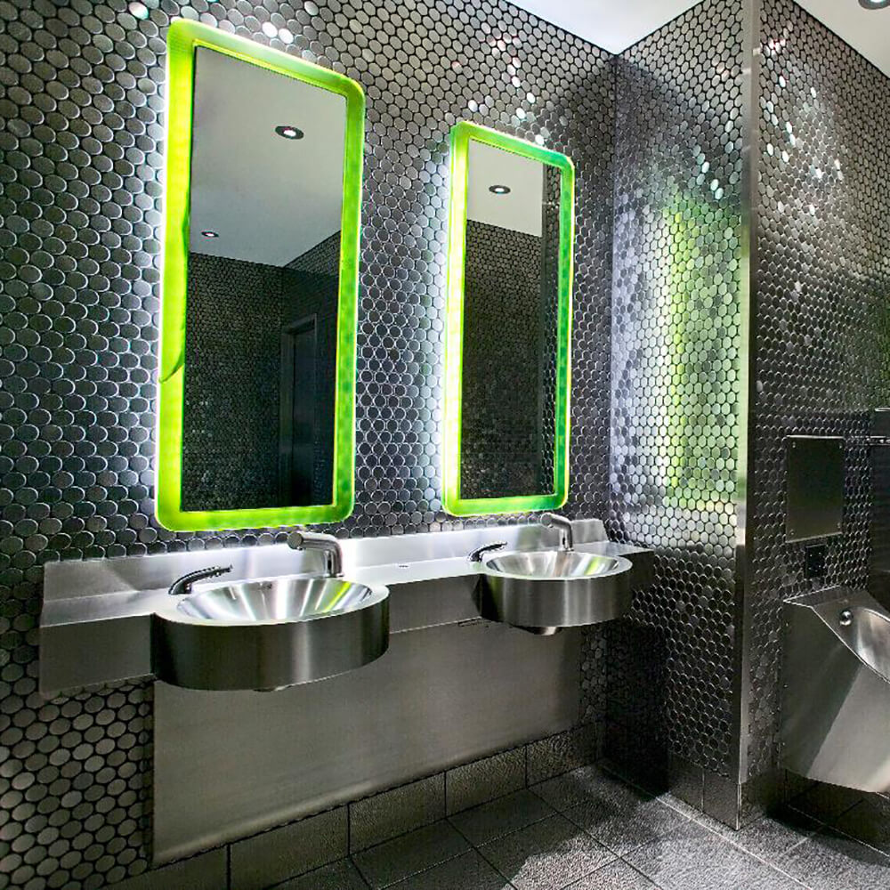 - Seamlessly welded stainless steel construction ensures a sleek, modern vanity and a more hygienic bathroom surface—easier to clean with fewer places for particles to accumulate