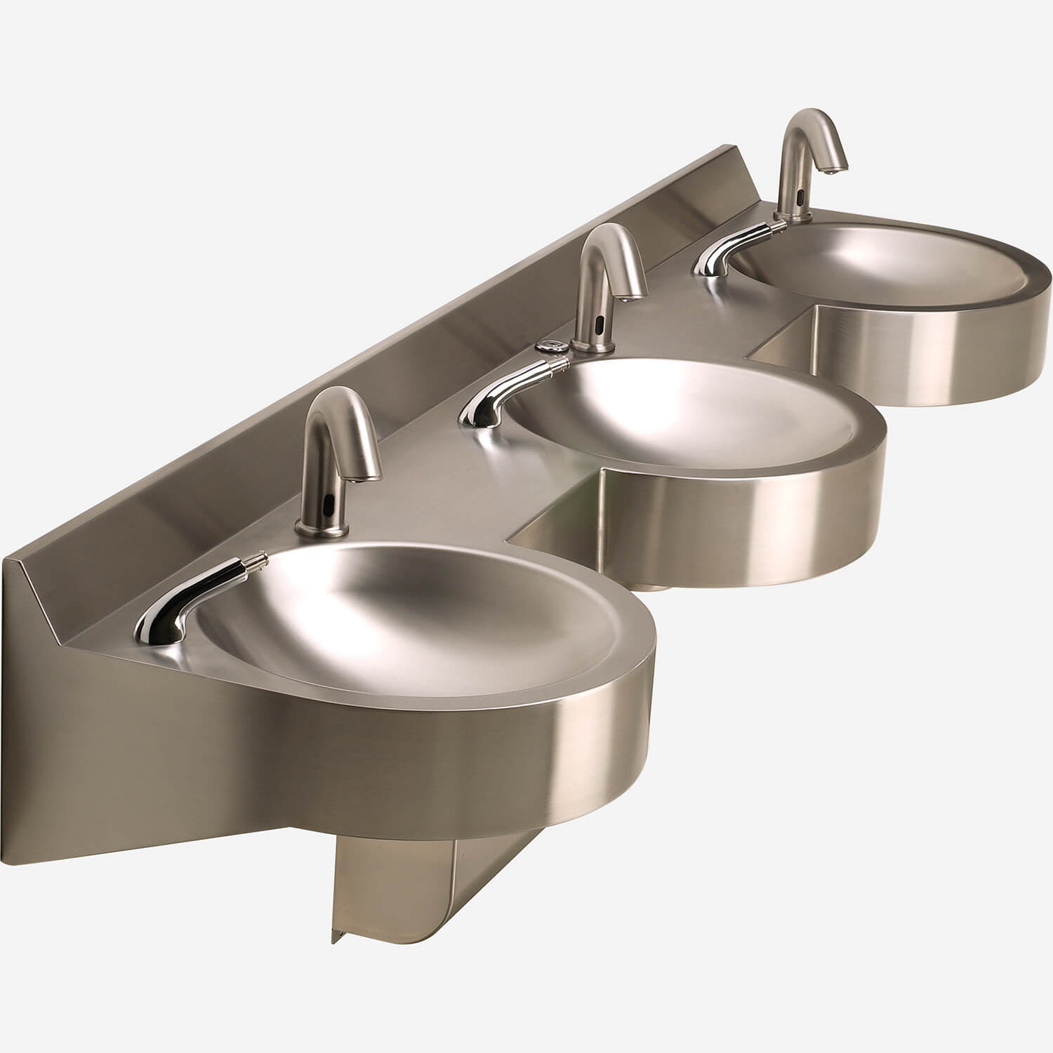 Model 8980 Series Washbasins are straight curved and are available in one, two, three or four station units. These units offer the look and feel of commercial-grade designer basins and counter tops.