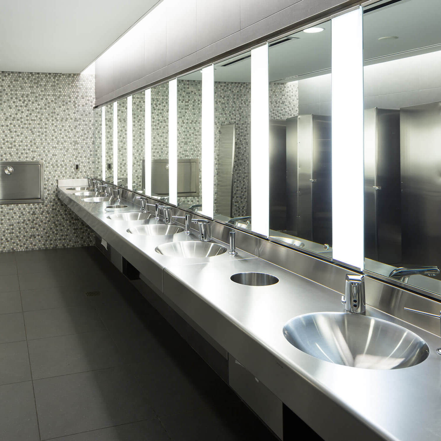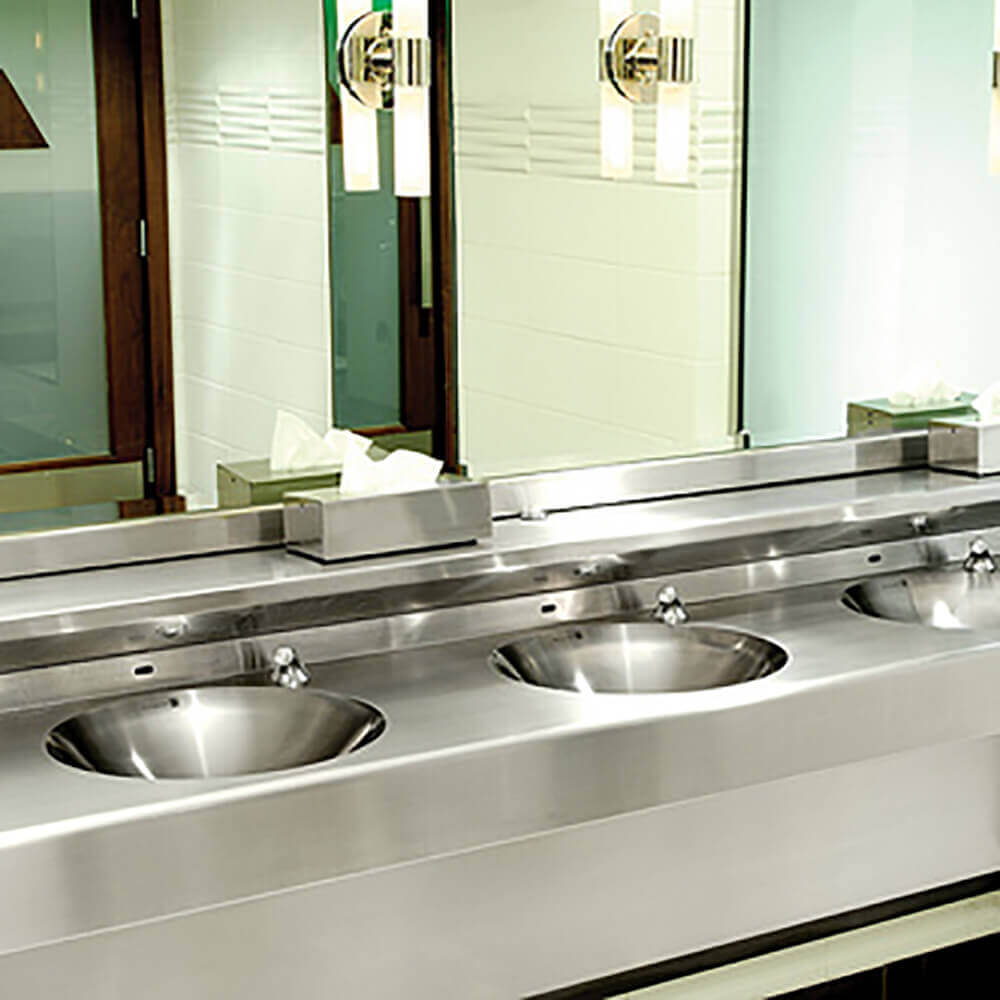 The System M2 solution merges creative design with ease of installation and care. One plumbing connection is required for multiple basin arrangements. Available in a variety of modern styles and options including soap dispensers, valving, bottom enclosures and tankless water heaters.